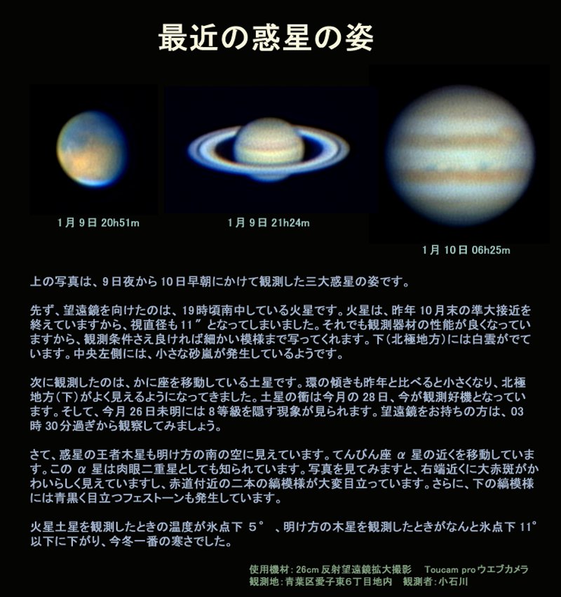 2006年1月9日の火星・土星・木星